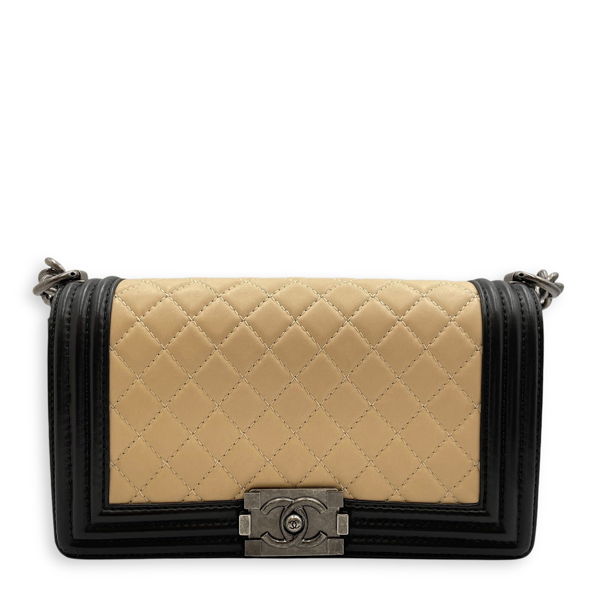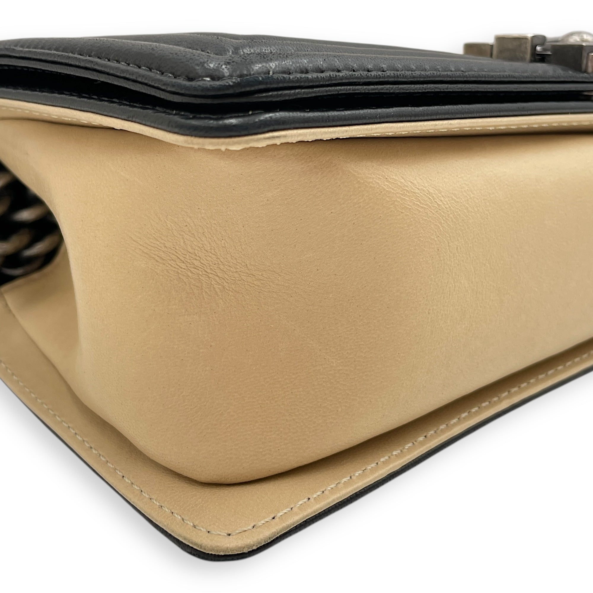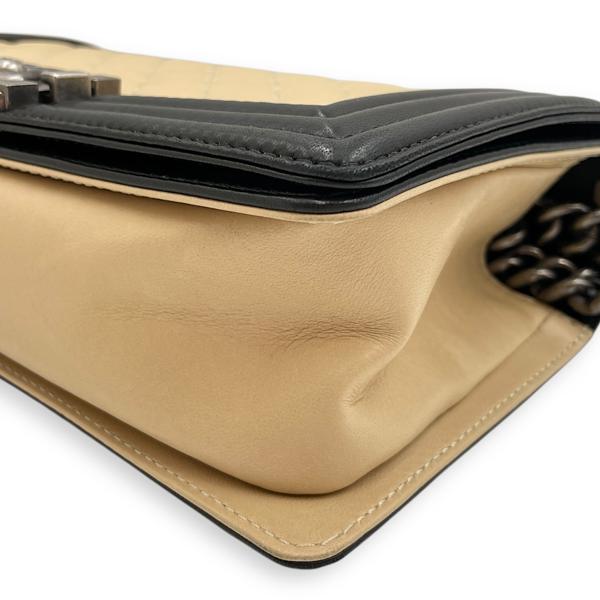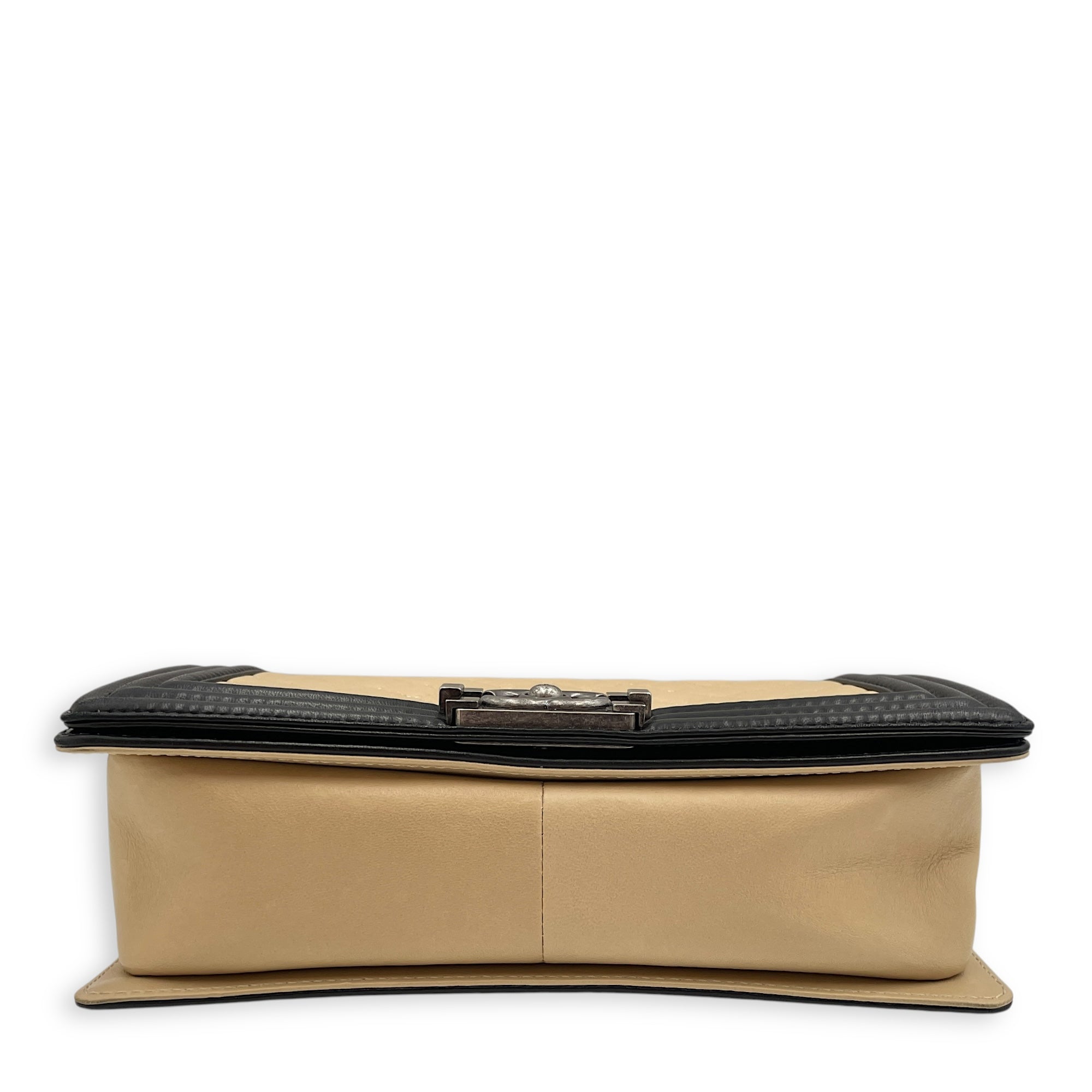 Boy Beige/Black Shoulder Bag in Lambskin, Ruthenium hardware